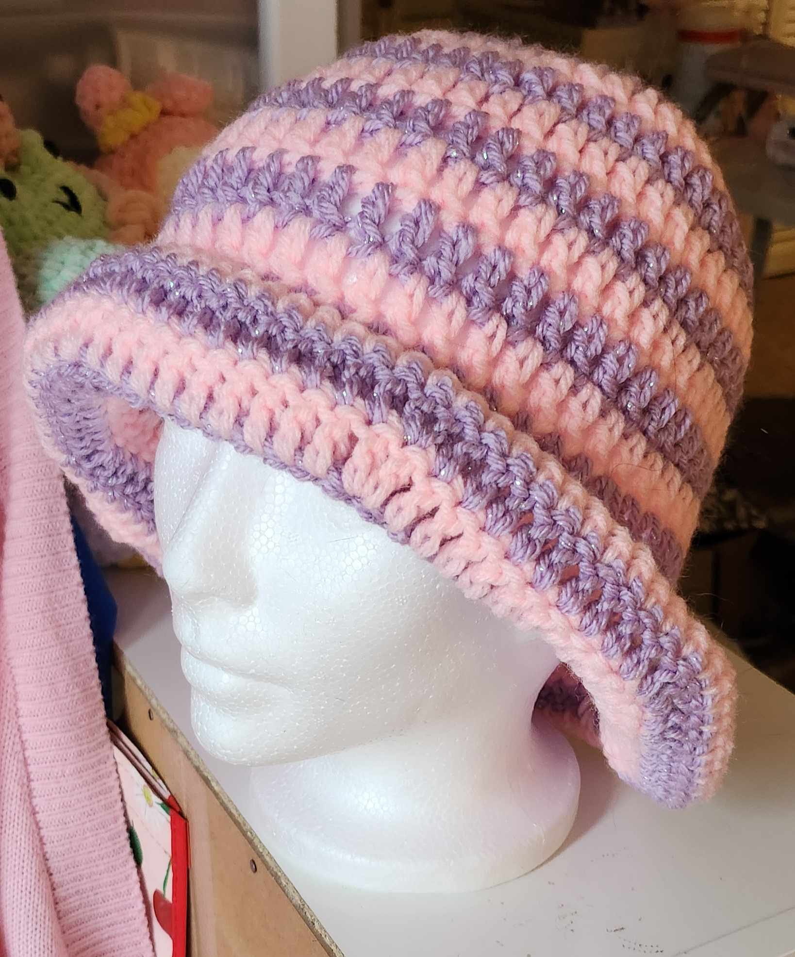 Made out of acrylic yarn, this cute bucket hat features an upturned brim to make it extra cute!!